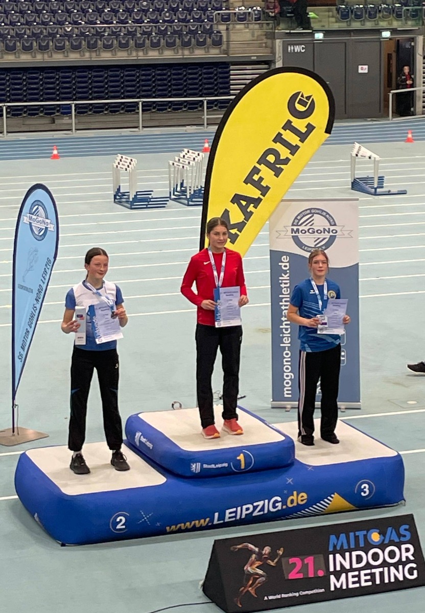 Über 1000 Anmeldungen aus 10 Bundesländern und ebenfalls aus Tschechien, Jordanien und der Schweiz, haben diese Veranstaltung zu einer wunderbaren Veranstaltung werden lassen. Auch unsere Sportlerinnen und Sportler konnten dabei persönliche Erfolge feiern, alte Grenze durchstoßen und sich ebenfalls auf dem Siegerpodest ehren lassen. So erreicht Linnéa aus der W8, den 3. Platz über 400m, Helene (W14) mit neuer Pb. über 800m ebenfalls den 3. Platz, Lilli (WU18) mit neuer Pb. beim Kugelstoßen Platz 2 und auch Sophia (WU18) , die schon mit einer starken Zeit im Vorlauf auf Platz 2 lag, sich im Finale den 1. Platz und eine neue Pb. erkämpfte.